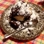 A repeat of the first of our full meals at home (a simple recipe, brought with us, that uses little more than pasta, cannellini beans, garlic, greens) leaves plenty of time for the first performance of La Commedia (I attempt to read the Italian, as Reb gamely provides a translation to be checked against Longfellow’s own).