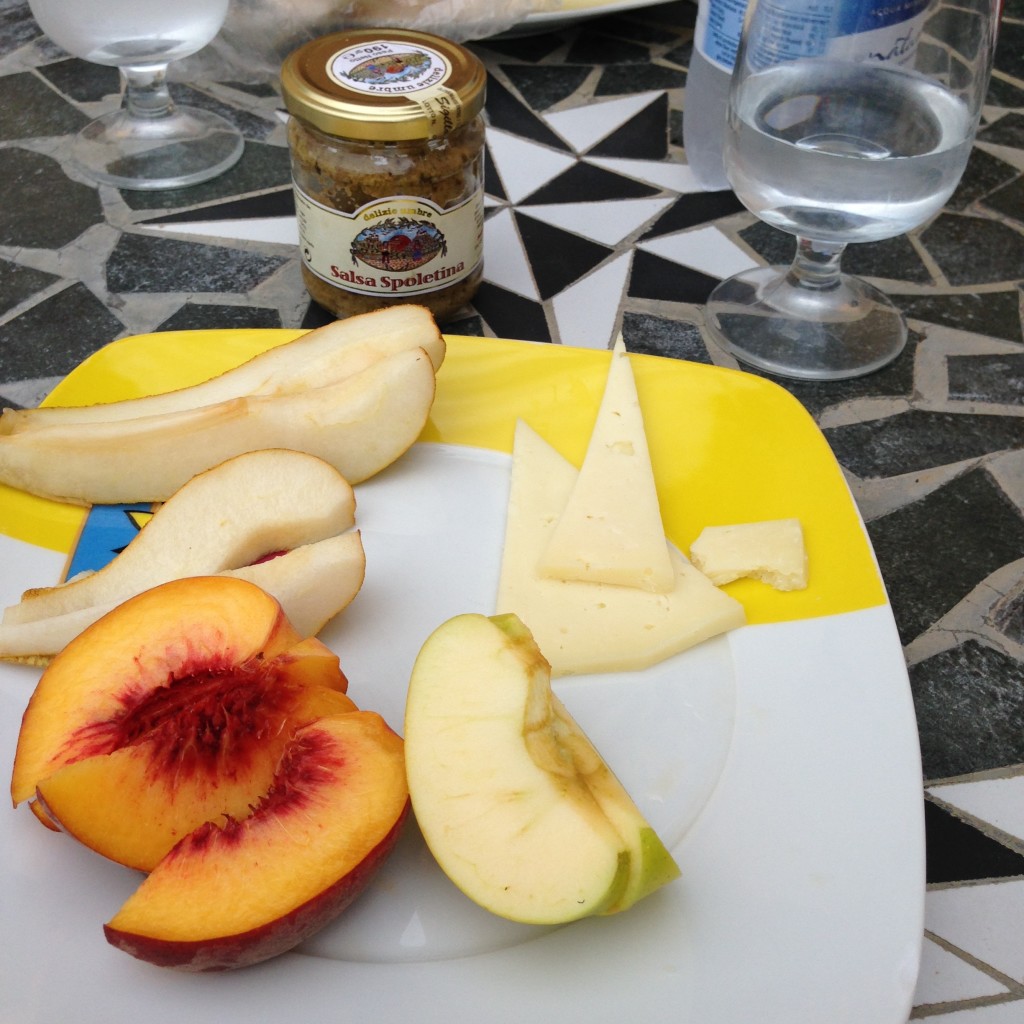 Some fruit, with a little bit of cheese, for lunch.
